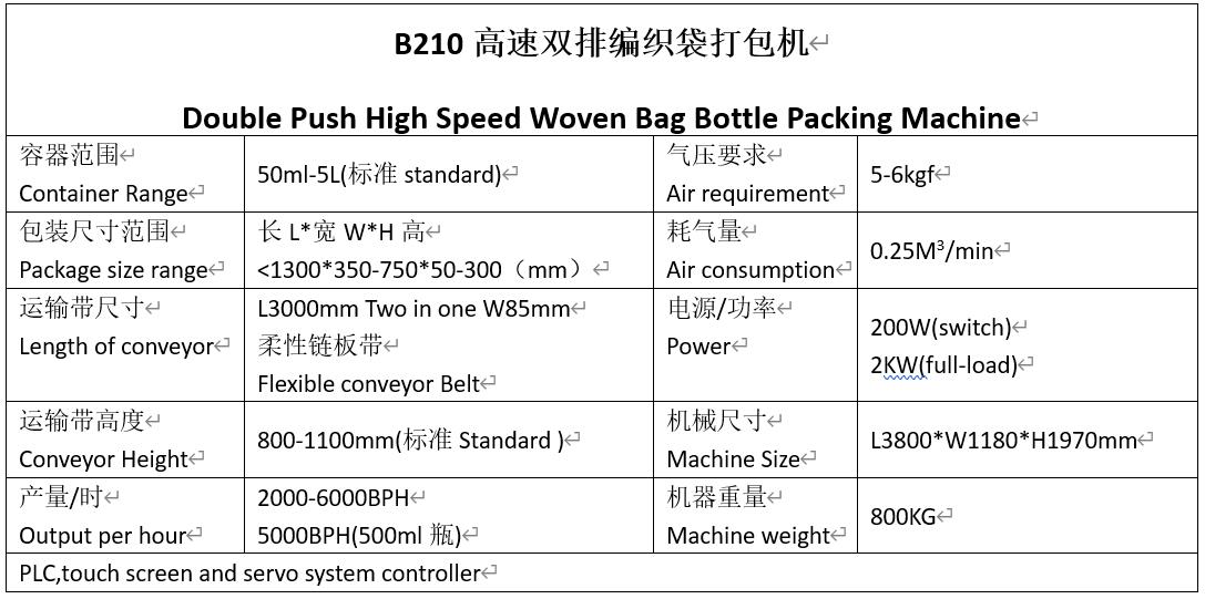 Product Name£º AQT-B210 Double push high speed Bottle Bagging Machine